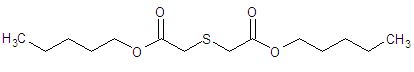 Synonyms : Dipentyl thiodiglycolate; Thiodiglycolic acid dipentyl ester CAS-No : 4121-11-3 Formula : S(CH2COOC5H11)2 Molecular Weight : 290.42g/mol Molecular structure : Density: 1.035g/ cm3 Boiling point : 360.8°C at 760 mmHg Solubility : Soluble in ethanol and ether, insoluble in water. Product Specifications: