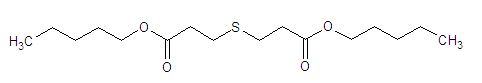 Synonyms :Thiodipropanoic acid dipentyl ester CAS-No : 4275-36-9 Formula : S(CH2 CH2COOC5H11)2 Molecular Weight : 290.42g/mol Molecular structure : Density:1.015g/ cm3 Boiling point :406.5°C at 760mmHg Solubility : Soluble in ethanol and ether, insoluble in water. Product Specifications: